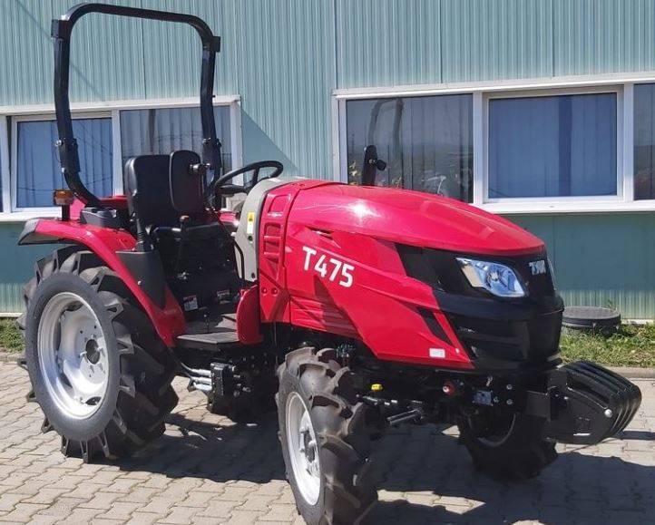 El modelo T475 ofrece más caballos de fuerza y opciones adicionales de comodidad mientras mantiene un bastidor de tractor más pequeño, el que lo hace perfecto para personas que necesitan hacer trabajos en espacios limitados. Su motor tiene mayor potencia y rendimiento, fácil mantenimiento y reparación, sencillez en su sistema de regeneración, menos ruido y vibración, amistoso con el medio ambiente. Los ejes son resistentes y fiables, junto con un sistema de dirección asistida, hace que sus maniobras sean suaves y sencillas. Las retroexcavadoras y otros complementos, no suponen ningún problema con un mando único standard con enclavamiento. En combinación con la palanca de la TDF situada en el lateral del lugar del operador, el interruptor de la TDF automática le permite escoger la modalidad de TDF que mejor se adapte al trabajo que esté haciendo. Consigue que su enganche de tres puntos esté en la posición correcta, sin tener que llegar al lugar del operador, con un control de posición externo. El control de la cargadora se encuentra configurado y cableado por la tercera función, lo que facilita su incorporación si el trabajo lo requiere. Trabajar de noche no es un problema ja que dispone de luces de diferentes modelos en la cabina para mejorar el trabajo que esté haciendo. Los largos recorridos no son un problema ya que puede fijar la velocidad e ir aumentando la potencia del motor proporcionalmente con el aumento de su velocidad. La cabina dispone de calefacción y aire acondicionado.